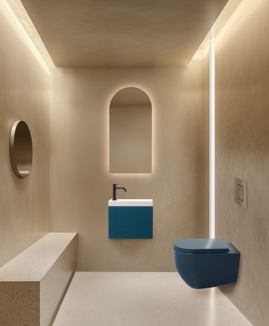 Met zijn opvallende blauwe kleur is dit toilet een echte blikvanger. Perfect voor wie durft te kiezen voor iets unieks en zijn interieur nét dat beetje extra karakter wil geven. Het moderne, strakke ontwerp past verrassend goed in verschillende badkamerstijlen – van minimalistisch tot eigentijds luxe.
