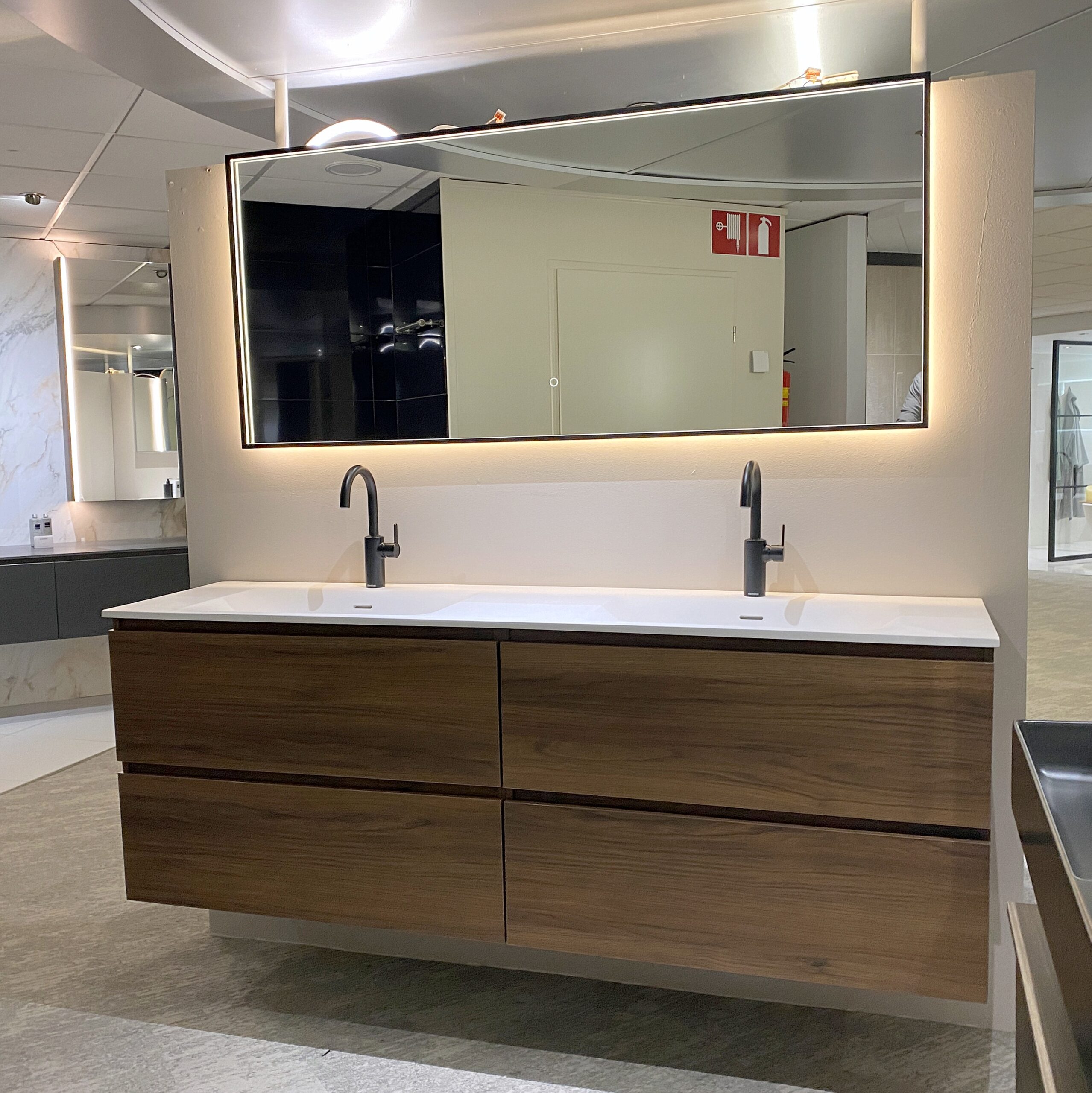 Detremmerie badmeubel 180 cm walnoot met dubbele wastafel en verlichte spiegel