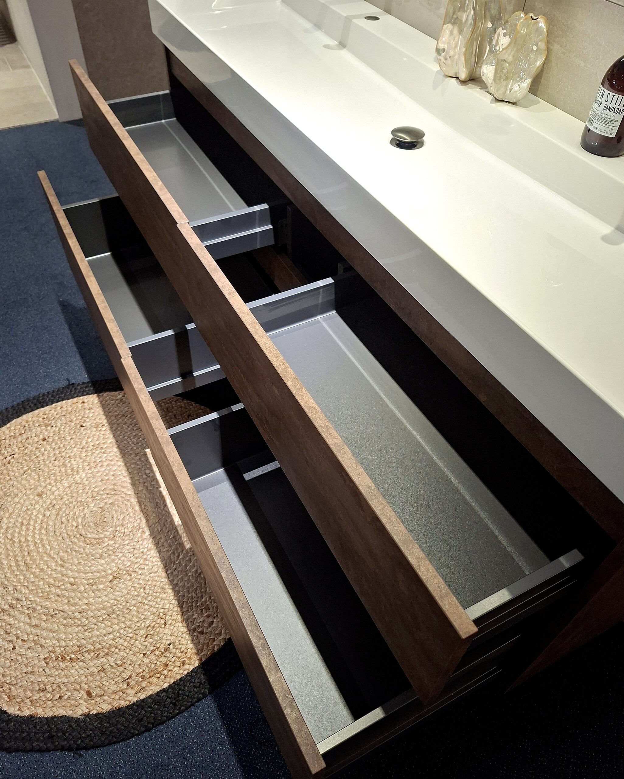 De slimme lade-indeling biedt volop opbergruimte voor handdoeken, toiletartikelen en accessoires. De softclose techniek zorgt voor extra comfort en duurzaamheid.
