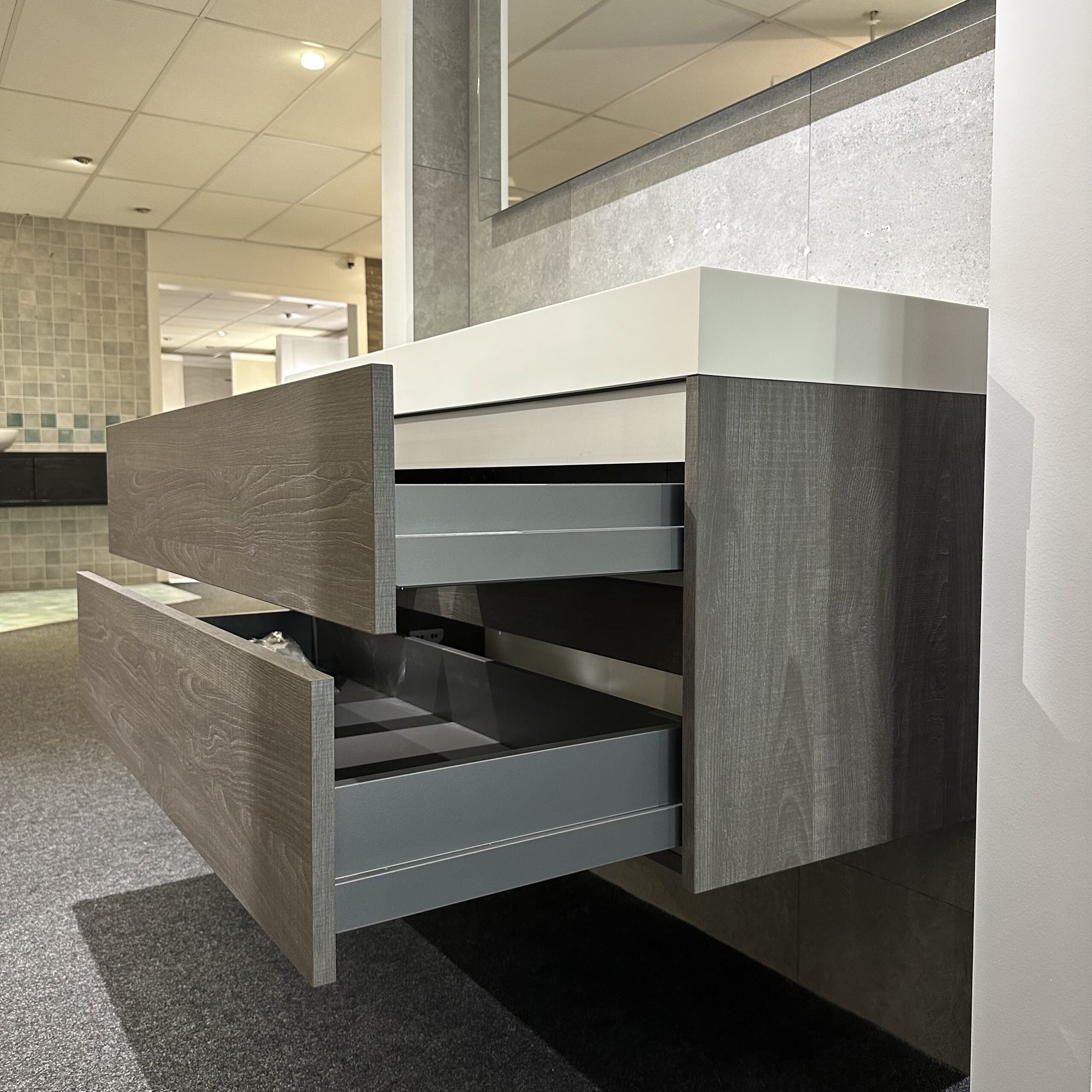 Deze showroomaanbieding is beperkt beschikbaar – profiteer nu van deze stijlvolle badmeubelset met hoogwaardige afwerking voor een uitzonderlijke prijs.