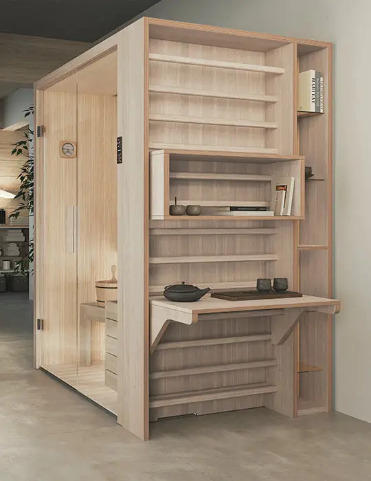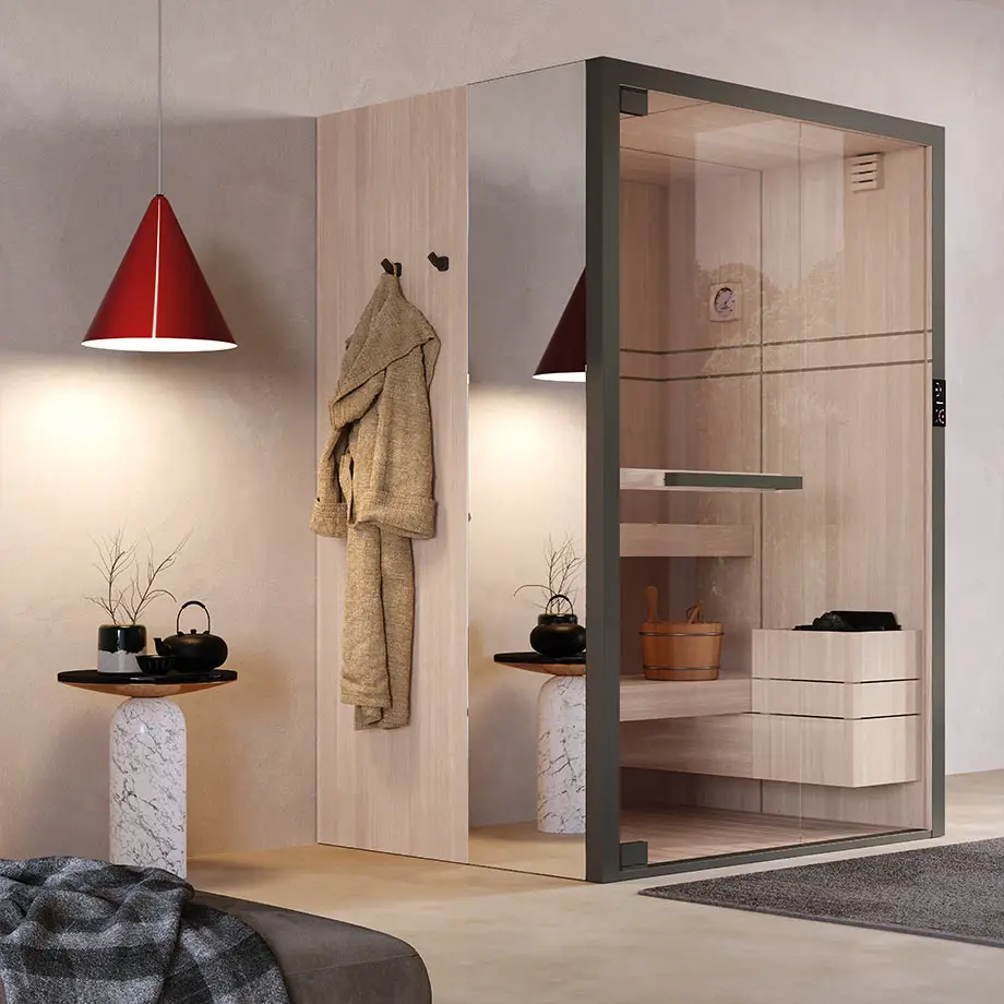 Ideaal voor wie beperkte ruimte heeft en toch goed voor zichzelf wil zorgen met de droge warmte van de sauna. De Celsius Sauna, elegant en modern, is gemaakt van hout van hoge kwaliteit en biedt een exclusieve wellnesservaring.