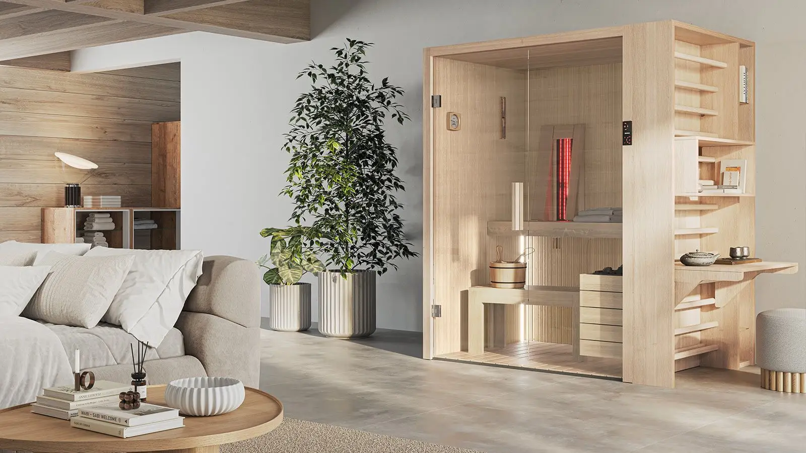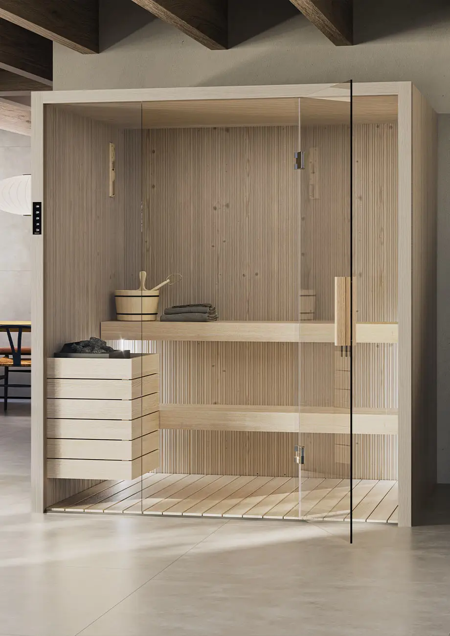 Fun Sauna biedt een breed scala aan modulaire opties en past zich aan verschillende ruimtes en behoeften aan. Met een klassieke maar verfijnde stijl past hij perfect, zelfs in appartementen, en combineert hij elegantie en functionaliteit voor een wellnesservaring zonder compromissen.