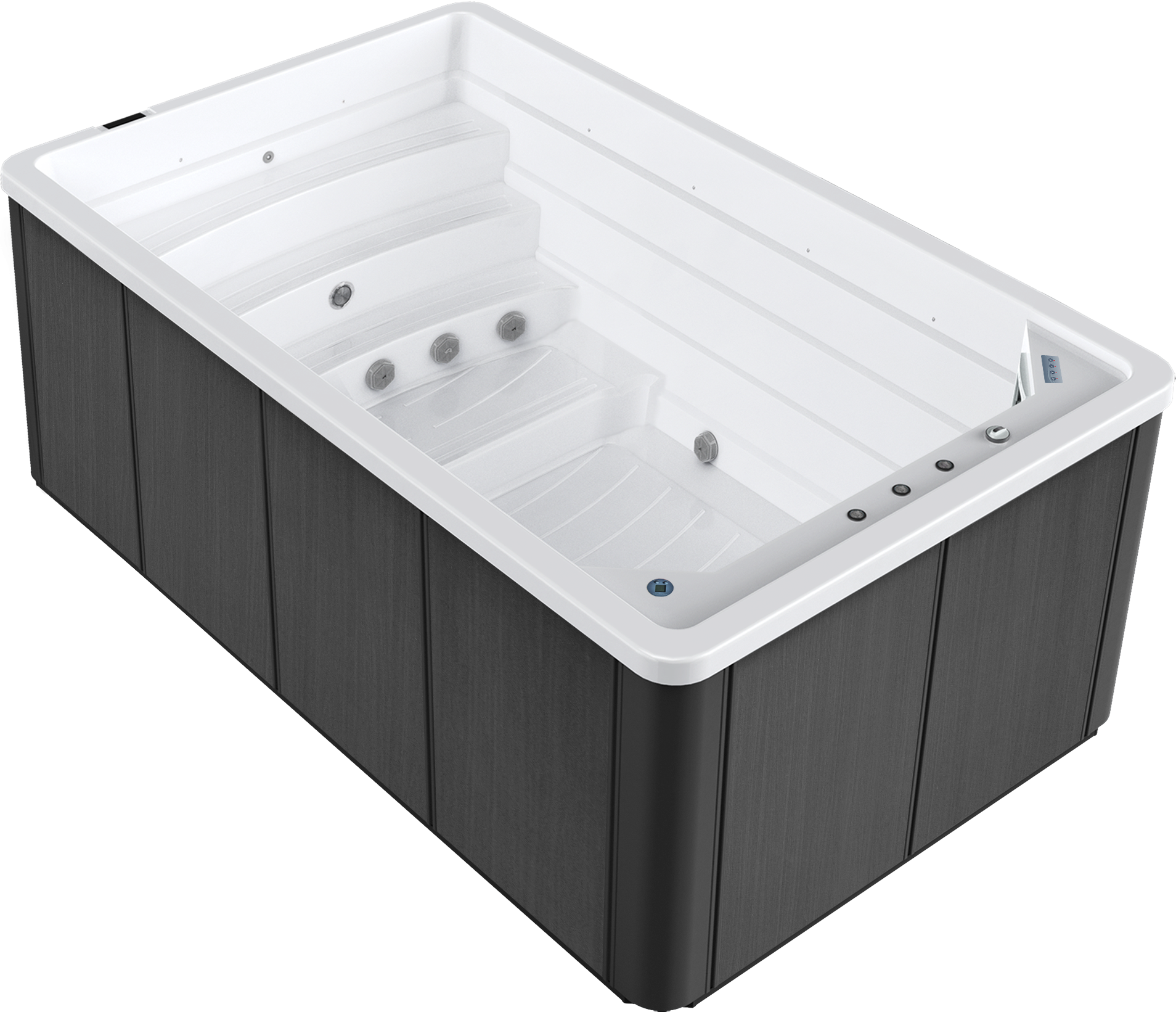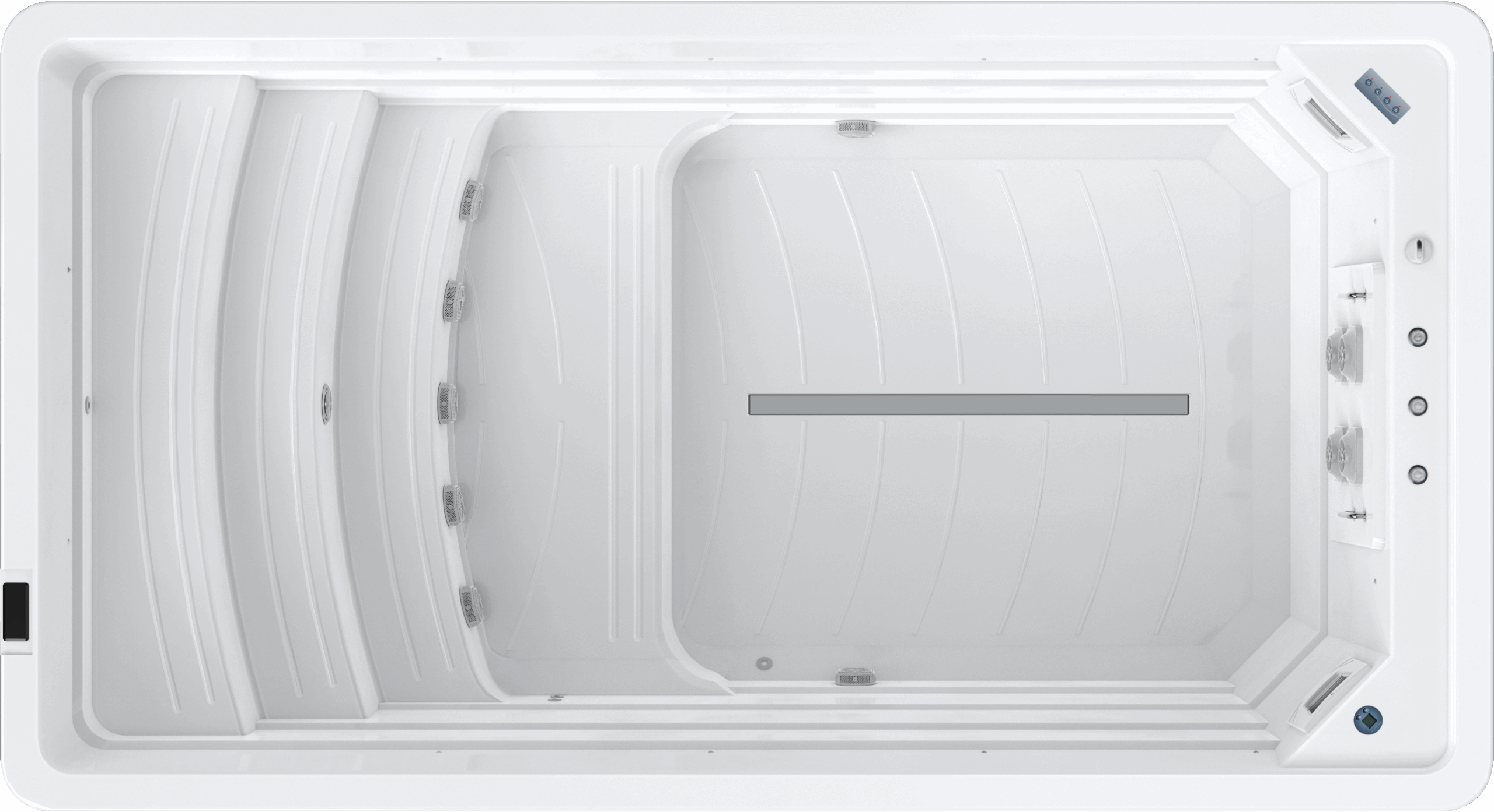 Binnenin vind je een doordacht systeem van krachtige, instelbare zwemjets die verschillende weerstandsniveaus bieden. Zo kan iedere gebruiker – van beginner tot topsporter – genieten van een training op maat.