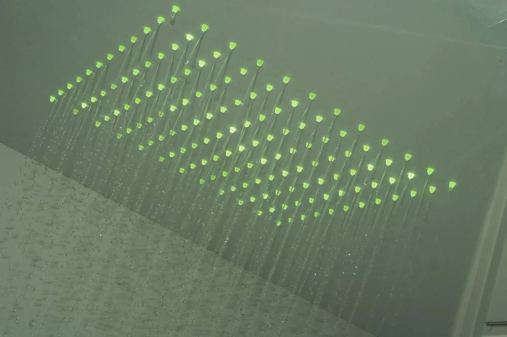 • Constructie in Alumpiù Panel • Plafond met geïntegreerde douchekop van 15 × 25 cm • 2-weg in-line omsteller met handdouche en douchehouder • Voorpaneel • Zijpaneel • Douchebak met opstaande rand • Afvoerafdekking van 15 × 15 cm in bijpassende kleur