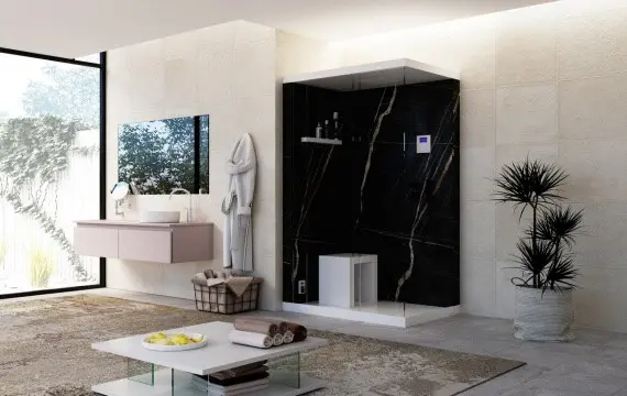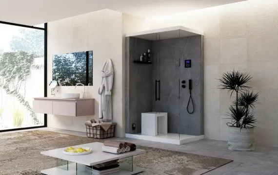 De +120 is de multifunctionele douchecabine van Piùesse waarmee je ook in kleinere ruimtes kunt genieten van de beste professionele technologieën. Deze douchecabine is ontworpen om het psycho-fysieke welzijn te verbeteren door verschillende elementen te combineren die een echte spa-ervaring in je eigen badkamer creëren.