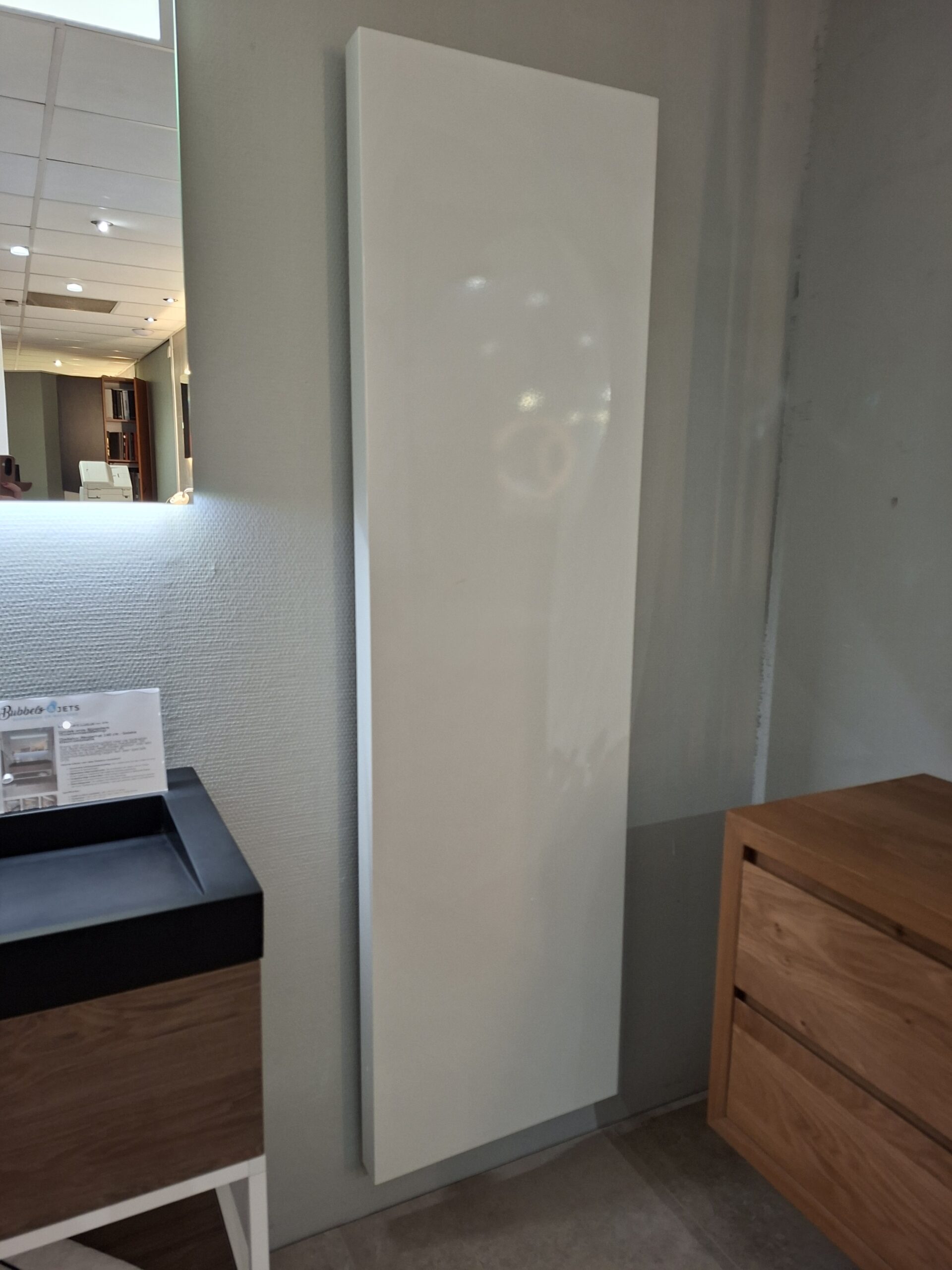 Met zijn strakke, verticale vorm en frisse verkeerswitte kleur (RAL 9016) is deze radiator een echte blikvanger in elke ruimte. Het slanke rechthoekige ontwerp past perfect in zowel moderne als tijdloze interieurs, terwijl de glanzend gelakte afwerking zorgt voor een luxe uitstraling.