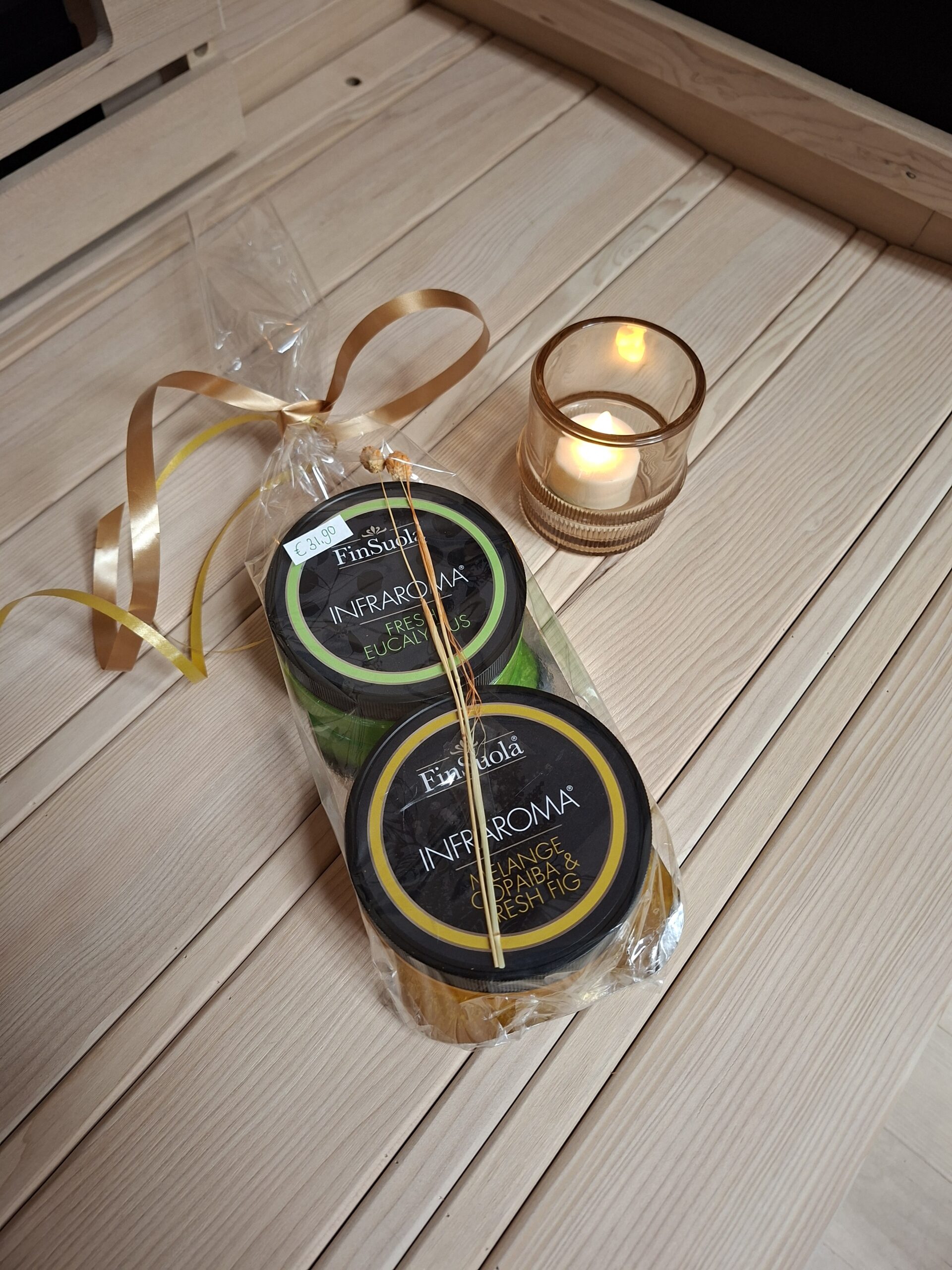 Gun jezelf of een ander een heerlijk aromatisch saunamoment met deze luxe kadoset van 2 Infraroma infrarood sauna potjes 200 gram.