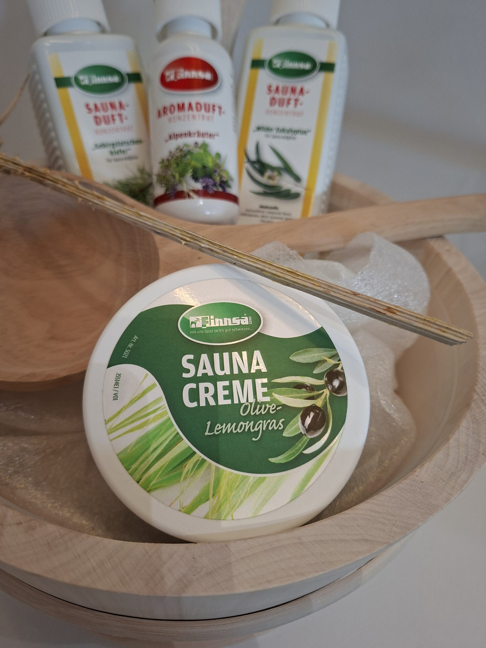 Daarbij bevat de set een rijke sauna crème met olijf & citroengras voor een zachte, gevoede huid en extra ontspanning.